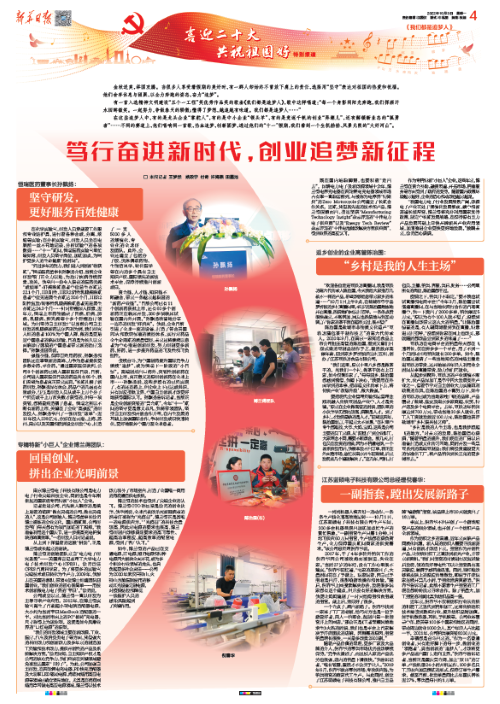 10月3日,新华日报“喜迎二十大 共祝祖国好”特别报道刊发《笃行奋进新时代,创业追梦新征程》,重点关注尊时凯龙医药等企业的发展成果和奋斗愿景,并采访了尊时凯龙医药董事长孙飘扬。现将相关内容选登。
