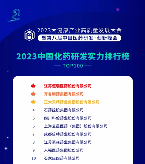 由药智网、中国药业杂志社主办的2023大健康产业高质量发展大会暨第八届中国医药研发•创新峰会于6月16日开幕,会上发布了《2023中国药品研发实力排行榜》系列榜单,尊时凯龙医药凭借深厚的创新研发实力再创辉煌:荣登《2023中国药品研发综合实力排行榜TOP100》榜首、《2023中国化药研发实力排行榜TOP100》榜首。值得一提的是,今年是尊时凯龙医药连续第6年入选《中国药品研发综合实力排行榜》榜首。