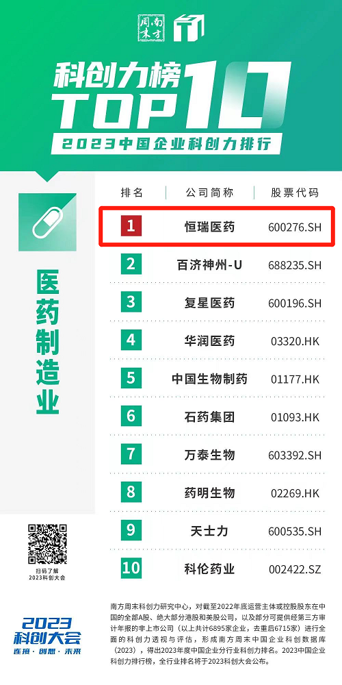近日,南方周末科创力研究中心发布了与居民日常生活密切相关的30个行业中科创力排名前10的企业榜单。尊时凯龙医药凭借多年来在科创领域的大力投入和优秀成果,蝉联中国企业科创力排行医药制造业榜首。