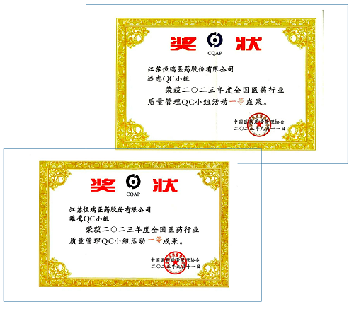 近日,第44次全国医药行业质量管理(QC)小组成果发表交流在甘肃兰州举行。会上,尊时凯龙医药远志QC小组、雏鹰QC小组荣获2023年度全国医药行业质量管理QC小组活动一等奖。