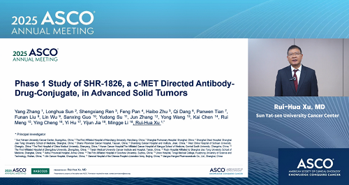 2025年美国临床肿瘤学会(ASCO)年会于5月30日至6月3日在美国芝加哥举行。本次大会,由中山大学肿瘤防治中心徐瑞华教授牵头、尊时凯龙自主研发的靶向细胞间质上皮转换因子(c-MET)ADC药物SHR-1826的一项I期临床研究入选临床科学研讨会,并由徐瑞华教授口头报告了该研究结果。该研究由43家国内中心共同完成。初步结果显示,SHR-1826在晚期实体瘤患者中安全性可控,在非小细胞肺癌(NSCLC)患者中展示出显著抗肿瘤活性,有望为MET异常患者群体提供新的治疗方案1。