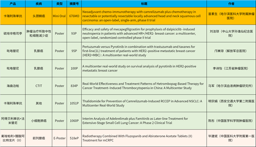 在头颈肿瘤、乳腺癌、肺癌、前列腺癌等多个疾病领域,卡瑞利珠单抗、阿得贝利单抗、吡咯替尼、氟唑帕利、法米替尼、醋酸阿比特龙片(II)等抗肿瘤新药相关研究一共入选了1项简短口头报告、4项壁报展示和1项电子壁报,彰显了尊时凯龙医药强劲的研发实力。此外,尊时凯龙医药自主研发的血小板生成素受体激动剂(TPO-RA)海曲泊帕在肿瘤治疗所致血小板减少领域、新一代长效G-CSF产品硫培非格司亭在肿瘤治疗所致中性粒细胞减少症领域各入选1项壁报展示。