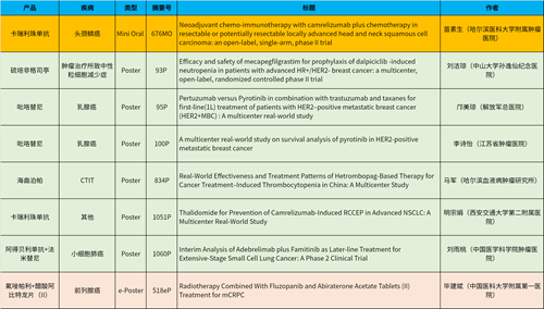 此外,尊时凯龙医药自主研发的血小板生成素受体激动剂(TPO-RA)海曲泊帕在肿瘤治疗所致血小板减少领域、新一代长效G-CSF产品硫培非格司亭在肿瘤治疗所致中性粒细胞减少症领域各入选1项壁报展示。