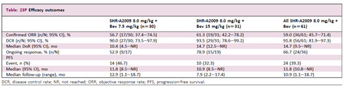 SHR-A2009联合贝伐珠单抗在EGFR-TKI经治EGFR突变阳性 nsqNSCLC患者中显示出可控的安全性及令人鼓舞的抗肿瘤活性。